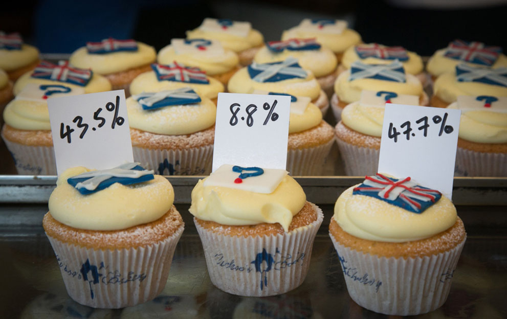 2014年9月17日,苏格兰爱丁堡的杜鹃面包店透露说,该店从今年3月7日开始售卖印有“要”、“不要”和“还没决定”的纸杯蛋糕,现在,“纸杯蛋糕公投”的计票结果显示,“不要”的支持率是47.7%,“要”的支持率是43.5%,“还没决定”的支持率是8.8%。