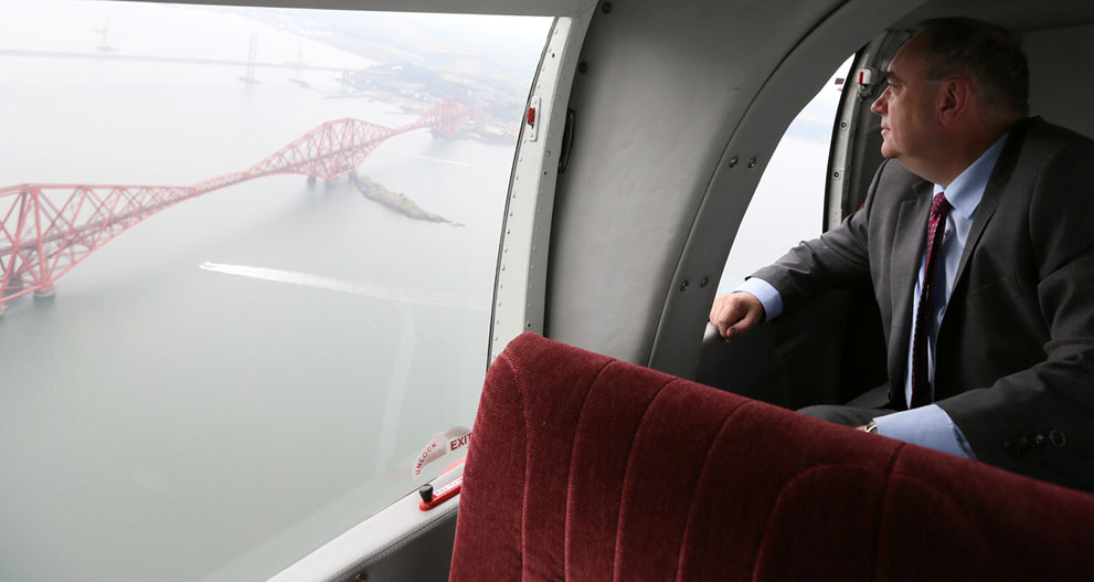 2014年9月16日,苏格兰首席大臣亚历克斯·萨蒙德(Alex Salmond)乘坐飞机从爱丁堡北福斯河上空飞过。