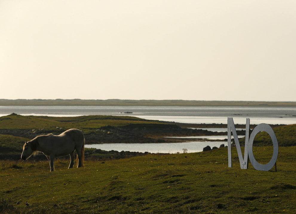 2014年9月15日,在外赫布里底群岛的北尤伊斯特岛(North Uist)田野间,出现反对苏格兰独立的“N0”标志。