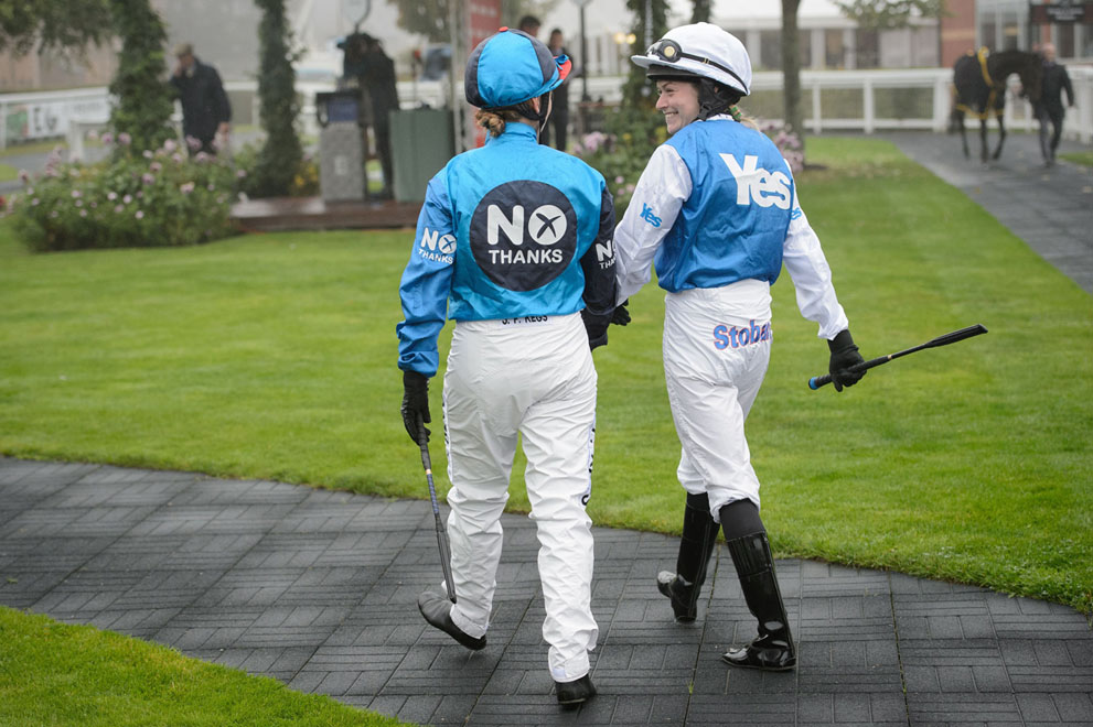 2014年9月15日,在苏格兰爱丁堡的马瑟尔堡赛马场举行Referendum Race比赛,骑师卡罗尔·巴特利(Carol Batley)代表反对独立方,而蕾切尔·格兰特(Rachael Grant)则代表支持独立方。