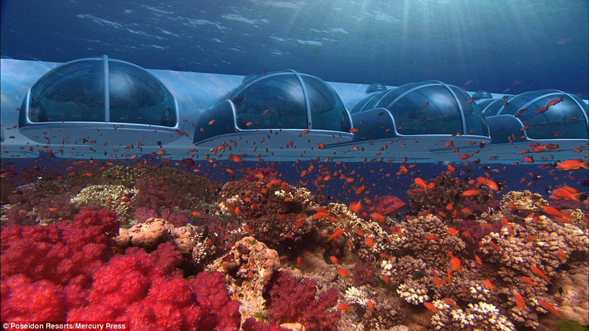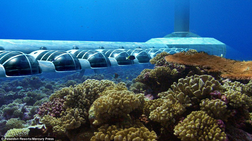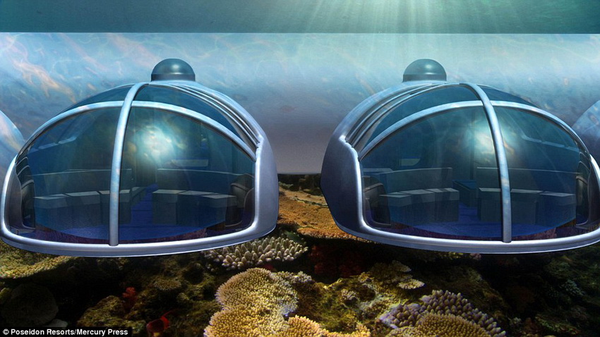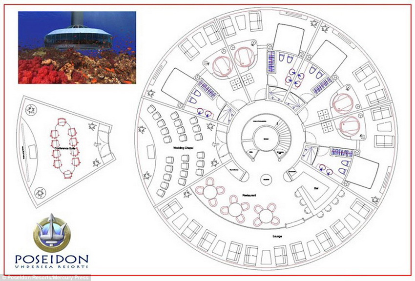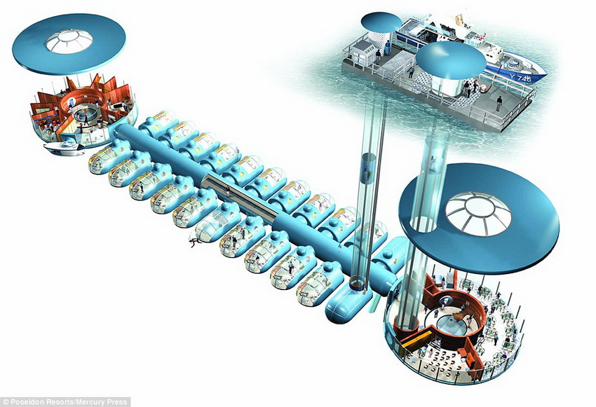 酒店创意来自美国潜艇协会主席L. Bruce Jones,各科可通过电梯自海岸直达水下酒店。