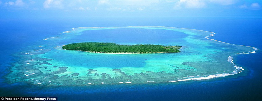 由泄湖包围的水下酒店位于斐济的神秘小岛,将周围美景尽收。
