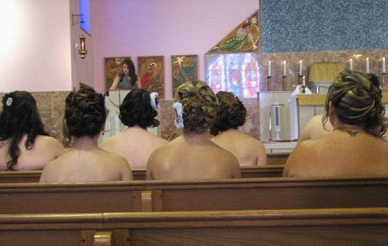 伴娘们在教堂内的“裸露”真相。(网页截图)