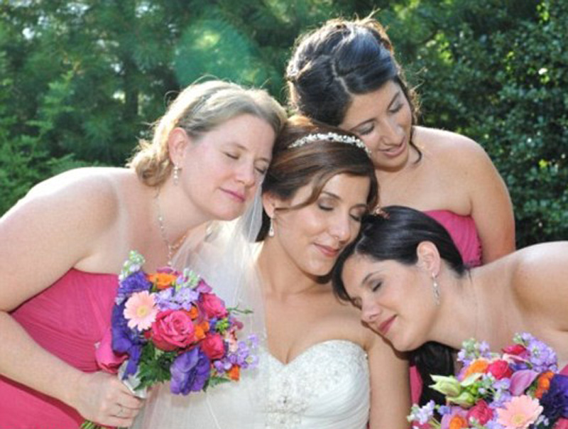 婚礼仪式太久?新娘伴娘似乎都累了,集体眯一下。(网页截图)
