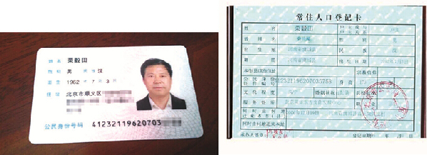 北京籍身份证及户口登记卡