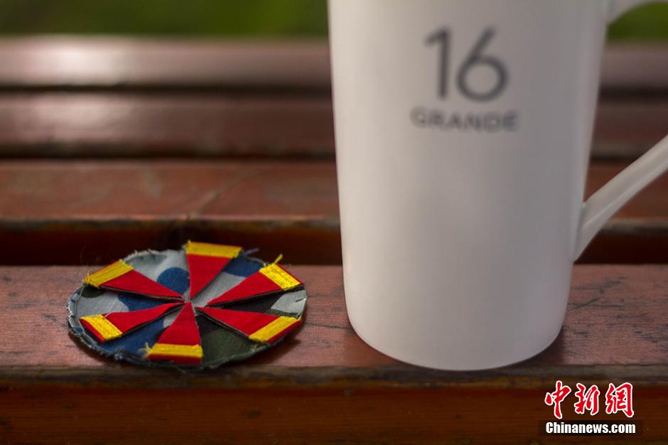 9月15日消息,四川大学锦江学院新生王文烨把原本土气的军训服分分钟变身让人艳羡的时尚单品,超精美的手镯和手袋、超时尚的背心和短裙、极具创意的相框和书皮、个性十足的拖鞋、实用的家居储物袋、小巧别致的杯垫……网友直呼“神作!光是看看也是醉了!”图为别致杯垫赚足眼球 。张祖椿 摄