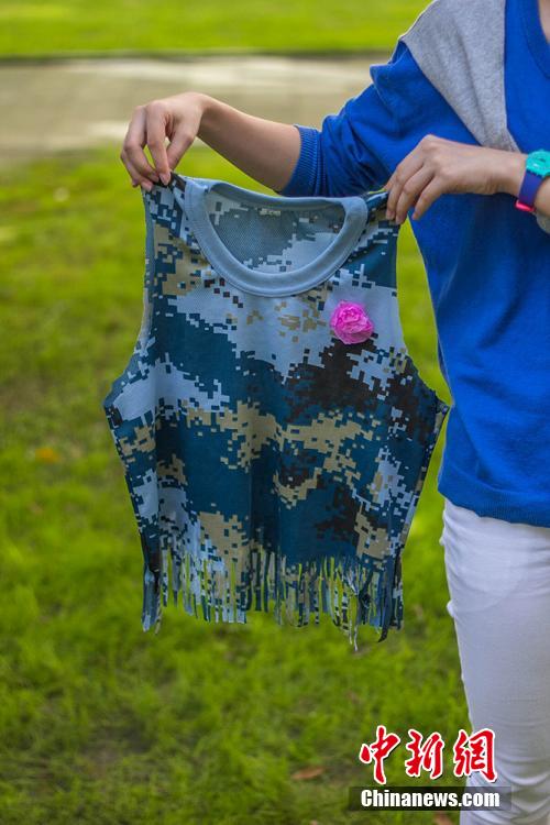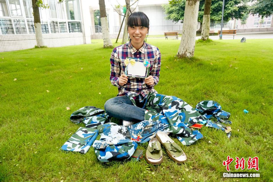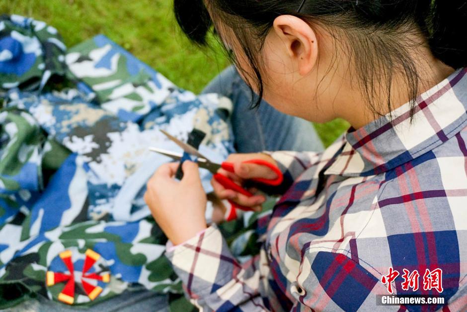 锦江学院新生巧手打造军训版时尚单品。张祖椿 摄