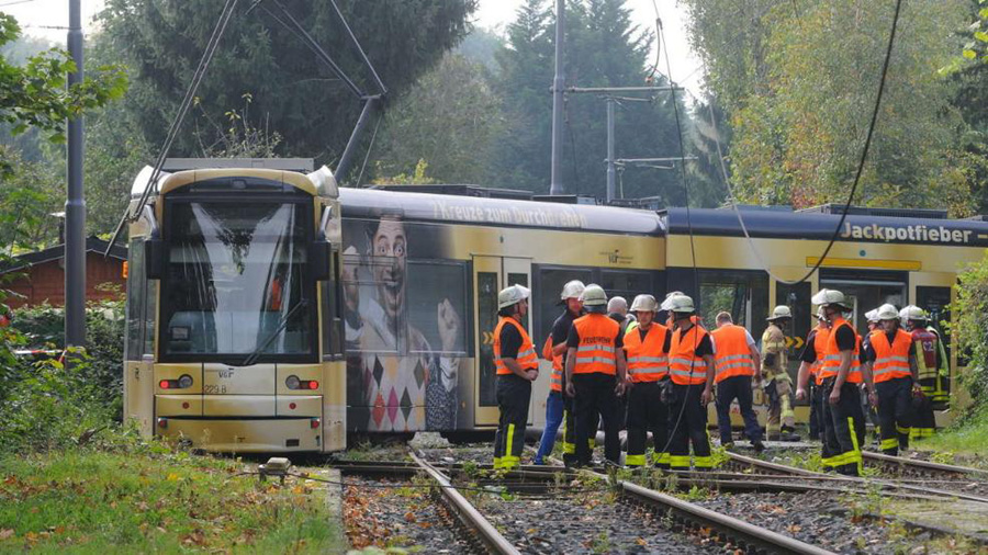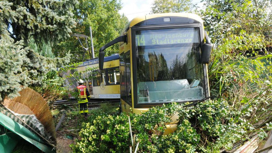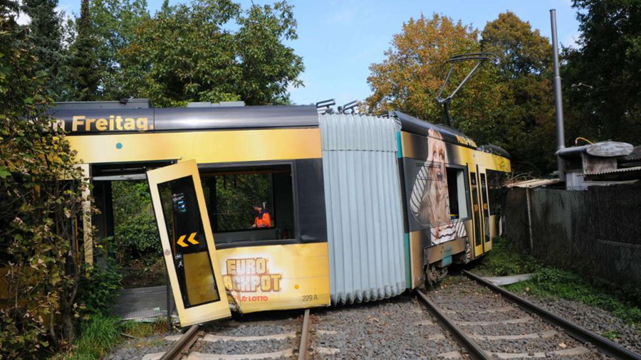 国际在线专稿:据德国《图片报》9月27日报道,当地时间9月27日上午,德国法兰克福市(Frankfurt am Main)的一列轻轨列车因转弯时速度过快而脱轨,最终冲进了路边的一个小型公园内。