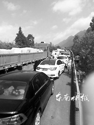福州到罗源高速上,堵车时应急车道上都被占满了车