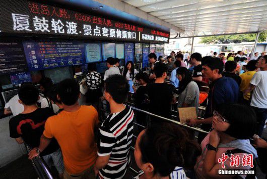 厦鼓轮渡售票窗口前游人排队 (来源:中新网)