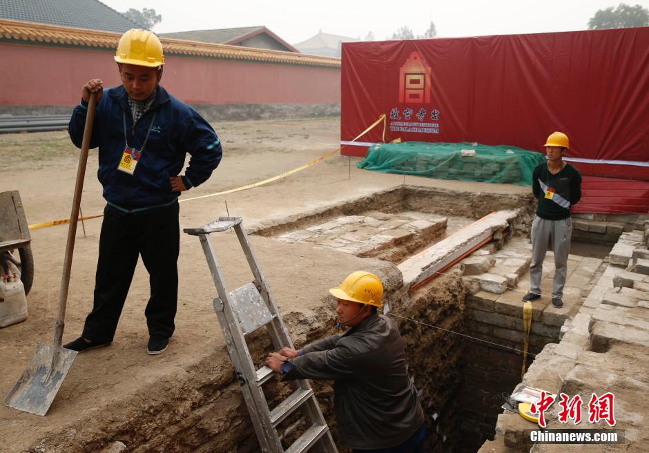 10月10日,北京故宫慈宁宫花园,故宫考古研究所的工作人员在明代宫殿建筑遗址上进行考古发掘。故宫博物院于2013年成立了故宫研究院考古研究所,并于2014年获得国家文物局认可的团体考古发掘资质。中新社发 刘关关 摄