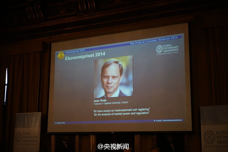 瑞典皇家科学院13日宣布,来自法国图卢兹大学的法国教授让·梯若尔因其研究“市场的能量与规则”获得2014年诺贝尔经济学奖。