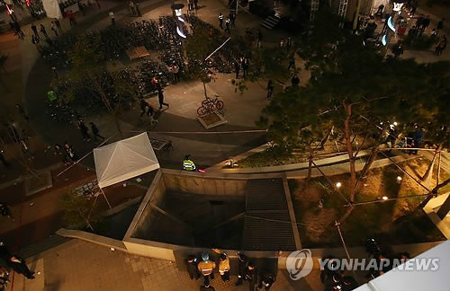 韩国一公演场附近通风口发生崩塌30余名观众坠落(图片来源:YTN新闻画面截图)