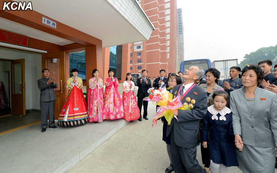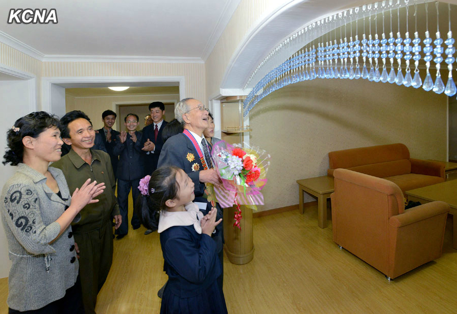 朝鲜教师住进高楼公寓 金正恩赠予住房证(来源:朝中社)