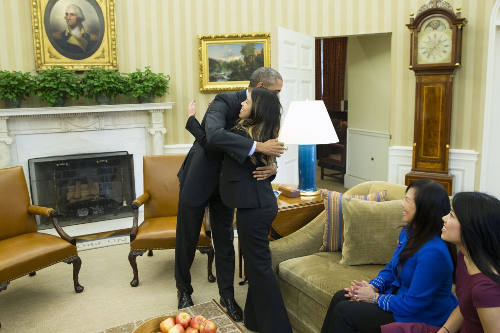 据报道,奥巴马在白宫与范尼娜会面并拥抱,并感谢范尼娜所做的一切。
