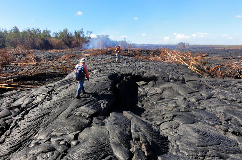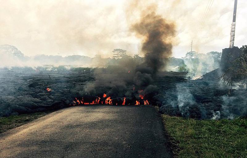 当地时间2014年10月,美国夏威夷基拉韦厄火山涌出的岩浆逼近Pahoa村。基拉韦厄火山的熔岩从6月27日开始不断涌出,目前逼近的社区里居住着约4000人。