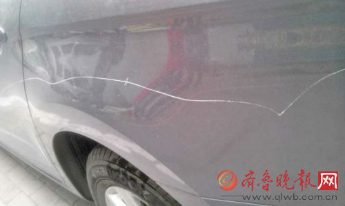 家住历下区师东小区的黄先生,26日早上5点多发现爱车被划了一条长痕。黄先生的车停靠在师东小区与师东村之间的街道上,旁边停靠的其他二三十辆车也同样“遇难”。当天上午,齐鲁晚报(http://www.qlwb.com.cn/)记者在现场看到,黄先生车身上的划痕长约两米,宽约1厘米,贯穿车身的一侧,非常明显。