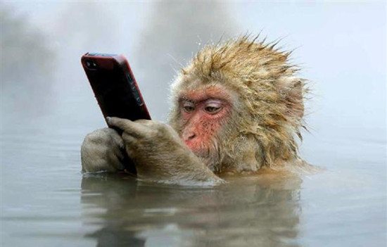 原标题:日本一猴子边泡温泉边玩手机照片获摄影奖(图)