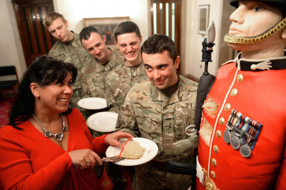 (据英国《镜报》11月3日报道,来自英国兰开夏郡克利瑟罗(Clitheroe)的顶级蛋糕设计师罗斯·达默(Rose Dummer)受《蛋糕大师》杂志的委托,制作出一个约2.1米高的真人大小“英国皇家卫兵”蛋糕,为今年的“罂粟花募捐”活动造势筹款。 图片来源:国际在线)