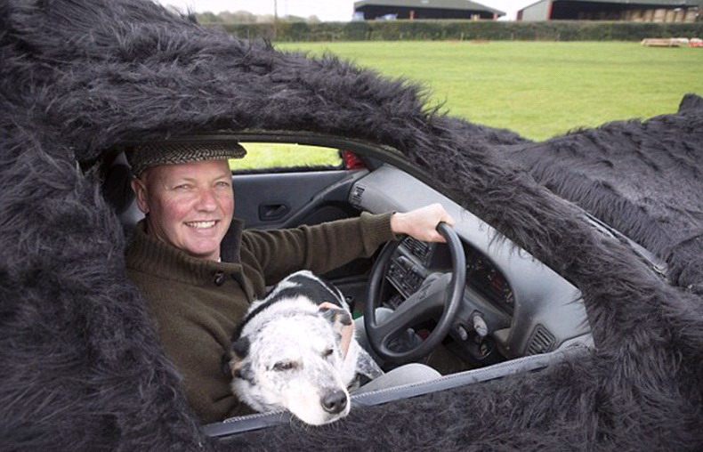 艾萨克现年46岁,他花费2000英镑(约合人民币19531元)给标志汽车加装外部毛皮和进行改装,直到其与他最喜欢的牧羊犬弗洛斯(Floss)看起来一模一样,只是体型更庞大。这辆牧羊犬汽车最高时速可达64公里,比真正的牧羊犬速度可快多了。