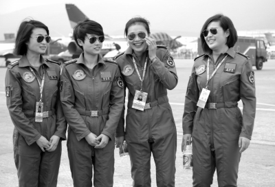空军首批歼击机女飞行员驾驶歼-10表演。