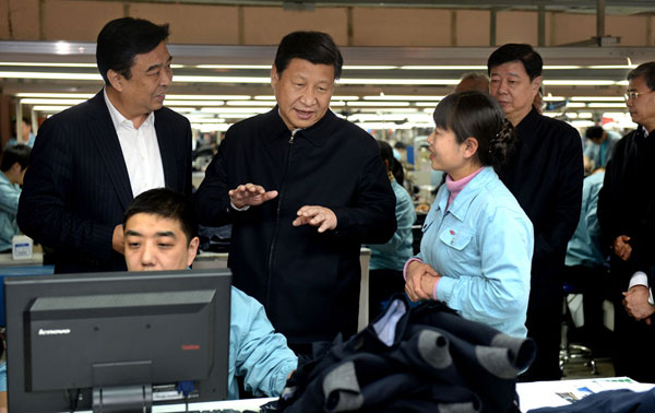 2013年11月24日至28日,中共中央总书记、国家主席、中央军委主席习近平在山东考察。这是11月25日,习近平到山东如意科技集团视察。□记者 李 勇 报道