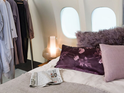 报道指出,机舱内所有座位除头等座椅外已被拆除,清出了约370平方米的空间,工作人员将机舱内换上温馨舒适的家居布置,内有1间大客厅、7间卧室、1个私人影院、2个设备齐全的厨房及儿童游戏区。
