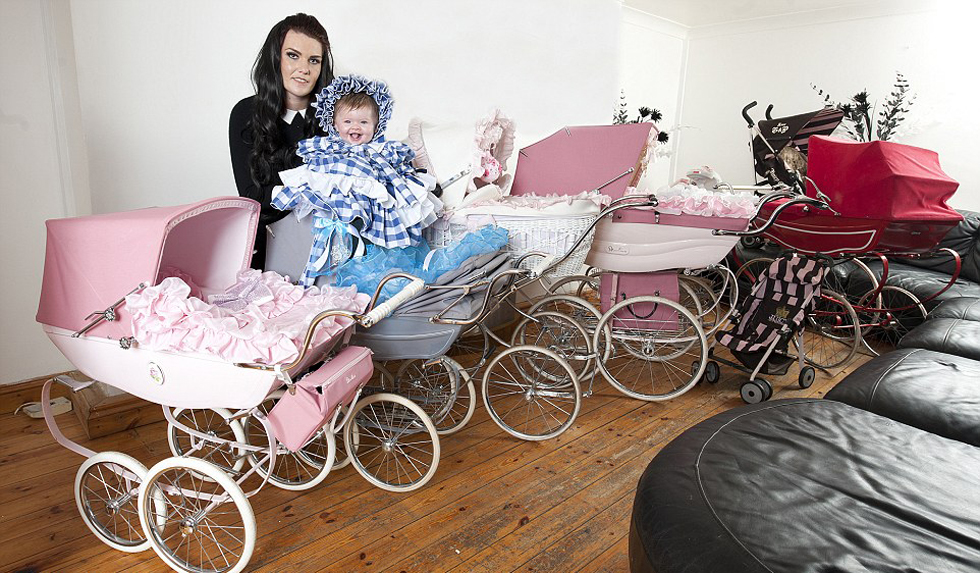 洛美尼拥有9辆婴儿车“座驾”,外出时一定要精心搭配当天的服饰。(网页截图)