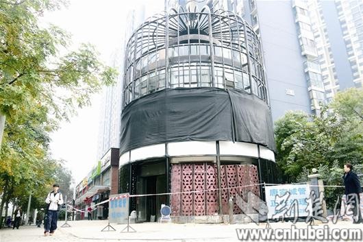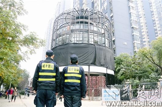 汉口闹市一四层楼高“鸟笼”违建 城管责令业主自拆