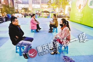 下午5时,雨虽停了,但气温越来越低,还有40多个人在坚持。考虑到冷风中久坐不利于参赛者的健康,傍晚5时30分,主办方为场上剩下的6名参赛者增加了游戏难度———裁判和参赛者面对面发呆,参赛者不准眨眼睛。