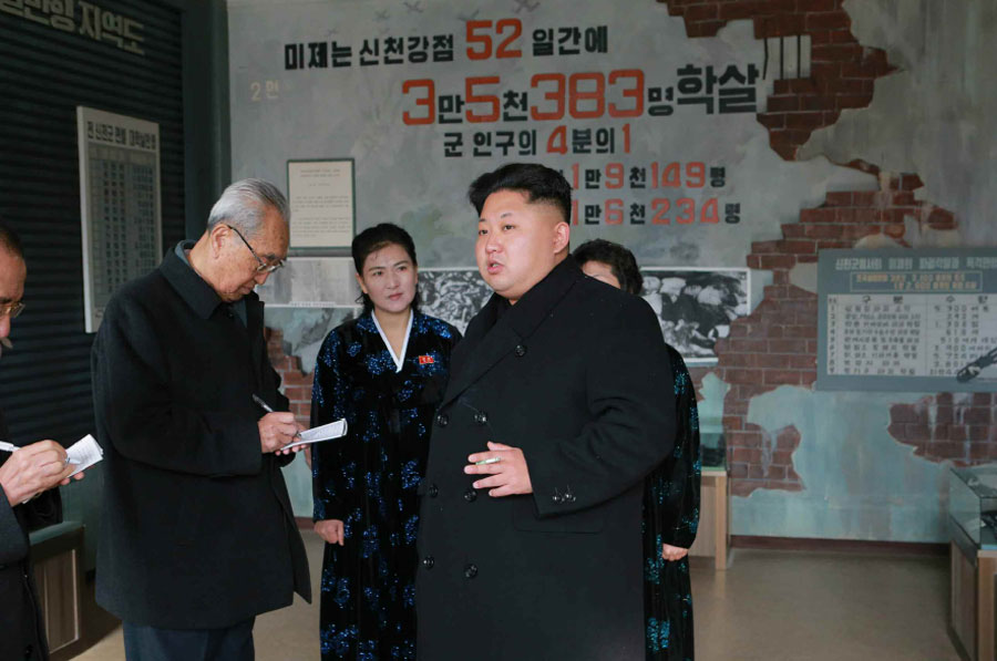 国际在线专稿:据朝鲜《劳动新闻》11月25日报道,朝鲜最高领导人金正恩日前视察了具有反美教育性质的朝鲜新川博物馆。金己男、韩光相、李再佾、金与正、朴明哲等陪同视察。