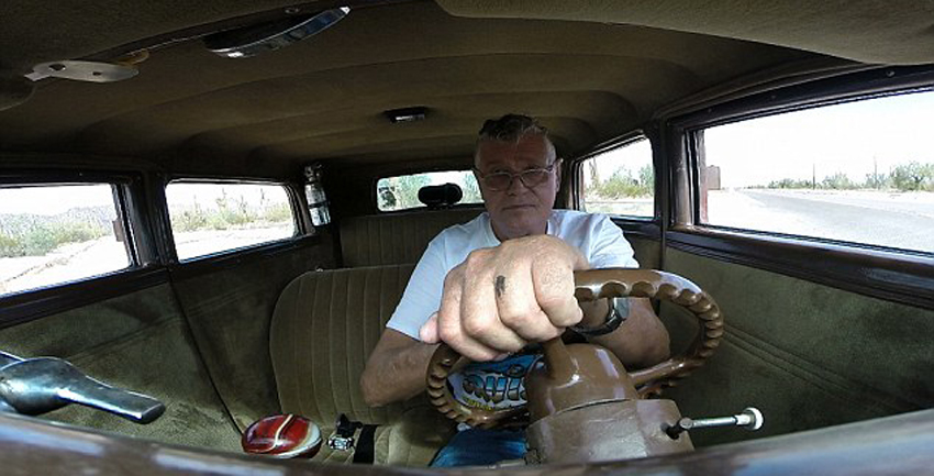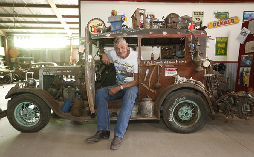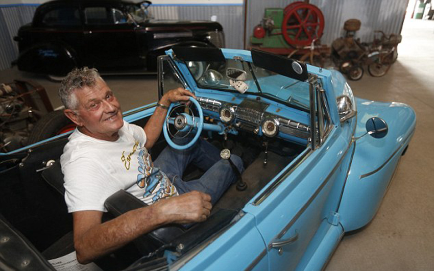 现年74岁的机械师亚当斯在亚利桑那州马里科帕迷你汽车博物馆展示他的作品。(网页截图)