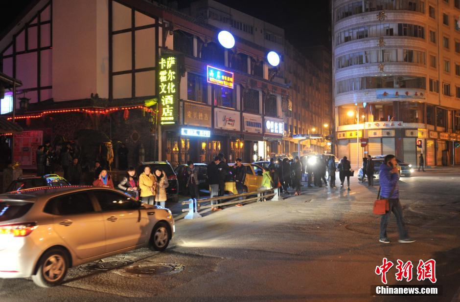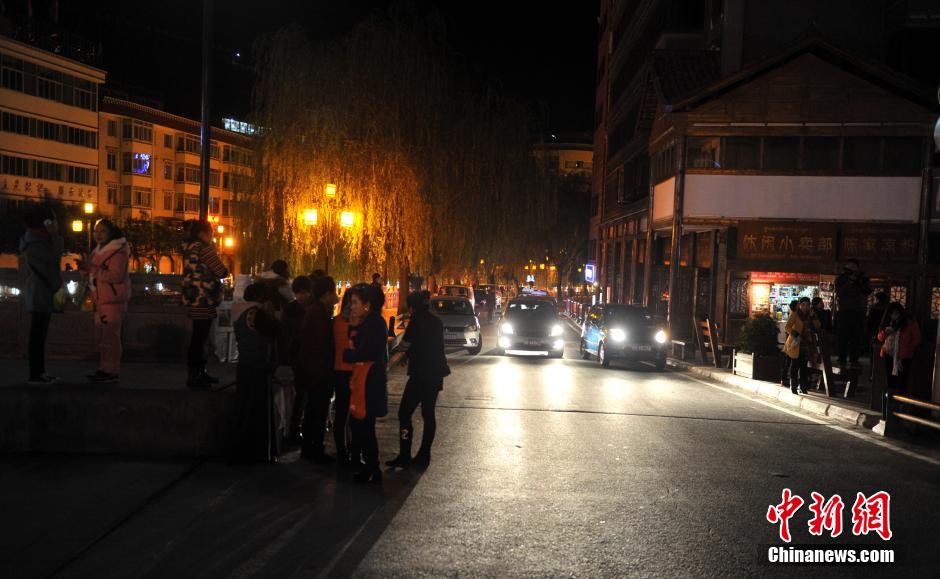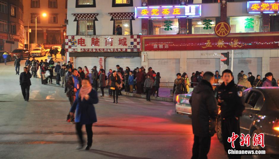 11月25日晚23时19分,四川甘孜州康定县发生5.8级地震,民众纷纷上街躲避,地震专家正在紧急会商,暂未接到灾情报告。图为地震发生后,康定街头躲避地震的民众。 中新社发 刘忠俊 摄