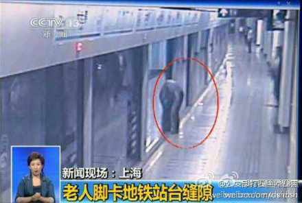 人民网北京11月26日电 据公安部治安管理局、公安部“打四黑除四害”专项行动办公室官方微博消息,近日,上海地铁8号线,一老人不慎把脚卡在站台缝隙中,眼看车门即将关闭,几名乘客赶紧跑来帮忙。一人用身体挡住屏蔽门,另几名忙向站台工作人员呼喊求助。工作人员立刻按下了紧急制动按钮。在众人的帮助下,老人转危为安。