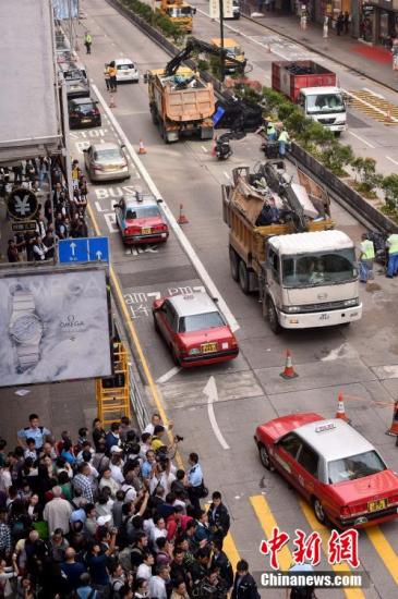 中新网11月30日电(温雅琼 杜静) 旺角,这一香港商业重地,27日终于重见天光。此前两日,该地区的示威障碍物清理行动在香港警方的协助下,伴随推撞和阻挠,基本顺利完成。