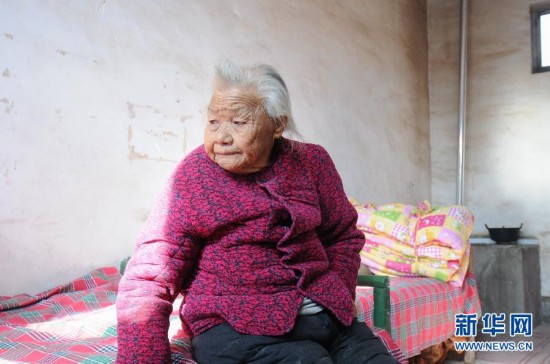 图为梁玉莲老人(11月12日摄)。大部分时间里,91岁的梁玉莲都只能带着63岁的“三儿”坐在院子里晒太阳,孤独地面对大山。在山西省临汾市东部海拔1800余米的佛爷山上,有一个叫作“马槽”的自然村,村子距离山顶直线距离只有数百米。梁玉莲和她的智障儿“三儿”是这里唯一的住户。为了照顾儿子,梁玉莲几十年来过着几乎与世隔绝的生活。如今已经91岁高龄的她只希望儿子能“走在我前面”。新华社记者徐伟摄