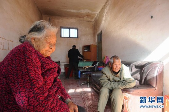 在当地政府和社会各界的帮助下,梁玉莲和“三儿”搬到了山下。天气好的时候,他们会在门口晒太阳(11月12日摄)。大部分时间里,91岁的梁玉莲都只能带着63岁的“三儿”坐在院子里晒太阳,孤独地面对大山。在山西省临汾市东部海拔1800余米的佛爷山上,有一个叫作“马槽”的自然村,村子距离山顶直线距离只有数百米。梁玉莲和她的智障儿“三儿”是这里唯一的住户。为了照顾儿子,梁玉莲几十年来过着几乎与世隔绝的生活。如今已经91岁高龄的她只希望儿子能“走在我前面”。新华社记者徐伟摄