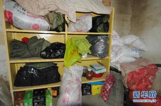 社会各界捐助的物品堆满了柜子(11月12日摄)。大部分时间里,91岁的梁玉莲都只能带着63岁的“三儿”坐在院子里晒太阳,孤独地面对大山。在山西省临汾市东部海拔1800余米的佛爷山上,有一个叫作“马槽”的自然村,村子距离山顶直线距离只有数百米。梁玉莲和她的智障儿“三儿”是这里唯一的住户。为了照顾儿子,梁玉莲几十年来过着几乎与世隔绝的生活。如今已经91岁高龄的她只希望儿子能“走在我前面”。新华社记者徐伟摄