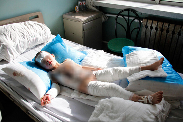 在见到孩子的那个瞬间,记者的心不由自主地揪了起来。孩子脖子以下全是伤口,由于烫伤面积过大,浑身几乎都被纱布包裹着。虽然暂时脱离了生命危险,但孩子每隔两三天就要发一次高烧,为了避免进一步感染,陪护的小依依叔叔每两个小时就得帮孩子翻一次身,“依依身上几乎都被烫伤了,翻身的时候再怎么小心也会碰到伤口,那痛苦可能大人都挺不住,但依依特别懂事,很少哭,有时我都忍不住落泪,她还劝我‘叔叔,别哭,我不疼。’”孩子叔叔心疼地说。医院护士告诉记者,“这么小的孩子如此坚强,很少见。”医生说,小依依伤势严重,需要接受包括植皮等一系列手术,费用约20万元。