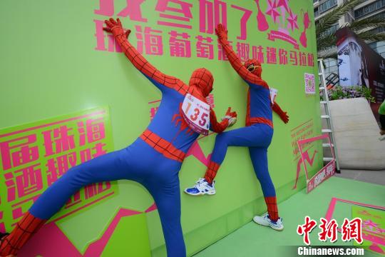 6日下午,第二届珠海葡萄酒趣味迷你马拉松在珠海唐家湾半岛拉开序幕,蜘蛛侠 冒韪 摄