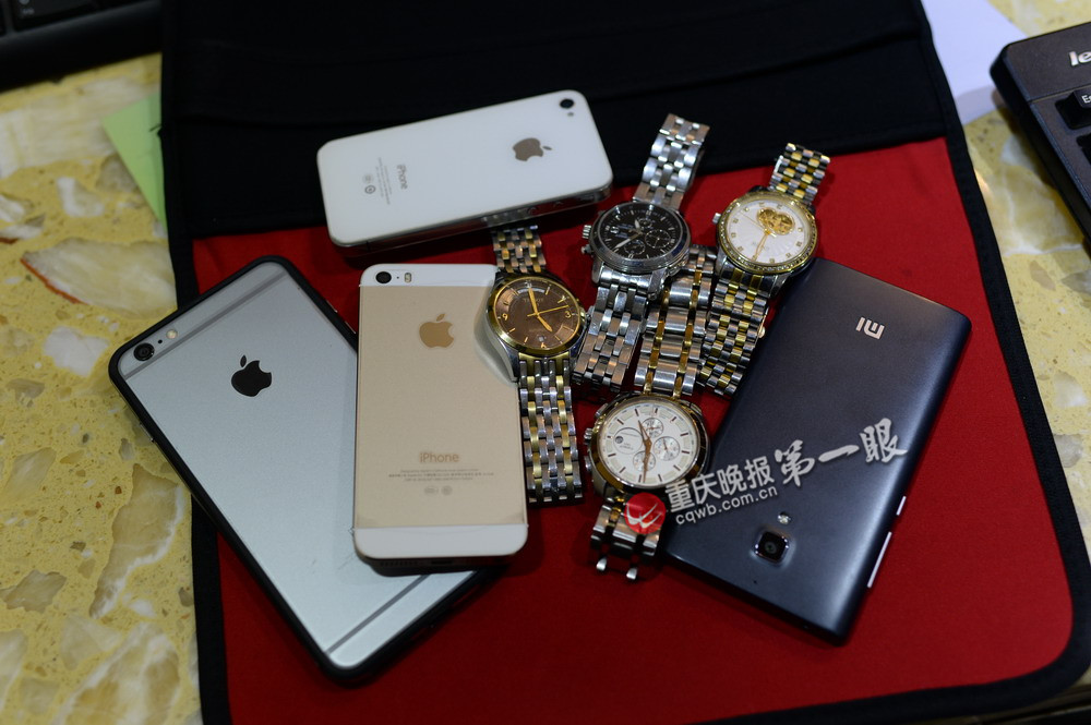 据交代,四人28日从南昌乘飞机来到重庆,8天时间先后到过沙坪坝、解放碑、南坪、大渡口等地的人流密集区域,除去开销,每人已经赚了七八百元。民警对四人随身物品进行了清点,发现他们不仅衣着光鲜,手表、戒指一应俱全,还有3人使用的苹果手机,其中一人还用的最新上市的iphone 6 Plus。