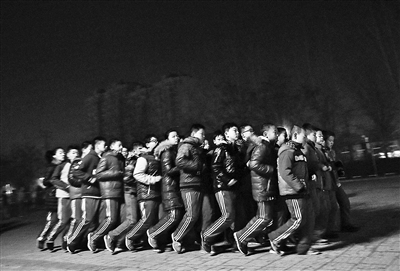 等待她们的,是接下来25天马不停蹄的校园生活:早晨5点50分,起床铃一响,孩子们从床上弹起来,用15分钟洗濑,迅速到操场集合开始晨跑,每个班排成10列,每列间隔30厘米,随着“一二一”的口号声,所有同学步伐统一。之后,大家集体排队买早饭、用餐、晨读,开始一天的7节课外加两节晚自习。这样紧张而有节奏的生活,是高考名校“衡水中学”模式的翻版,这也是像尚洁一样的家长们选择把孩子送来的重要原因——早些习惯,多学东西,为进入传说中一本率90%以上的“衡水中学”作准备。
