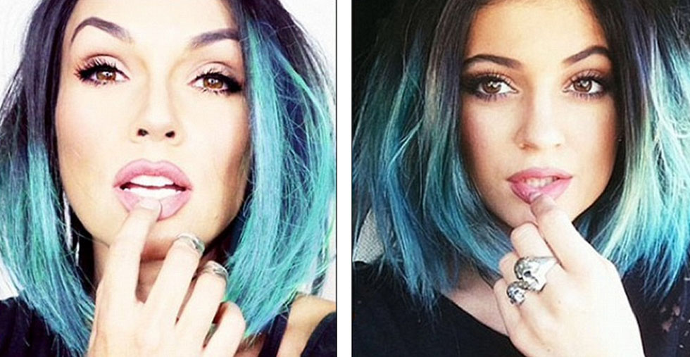 约翰逊(左)化妆成凯莉·詹娜(右)。(网页截图)