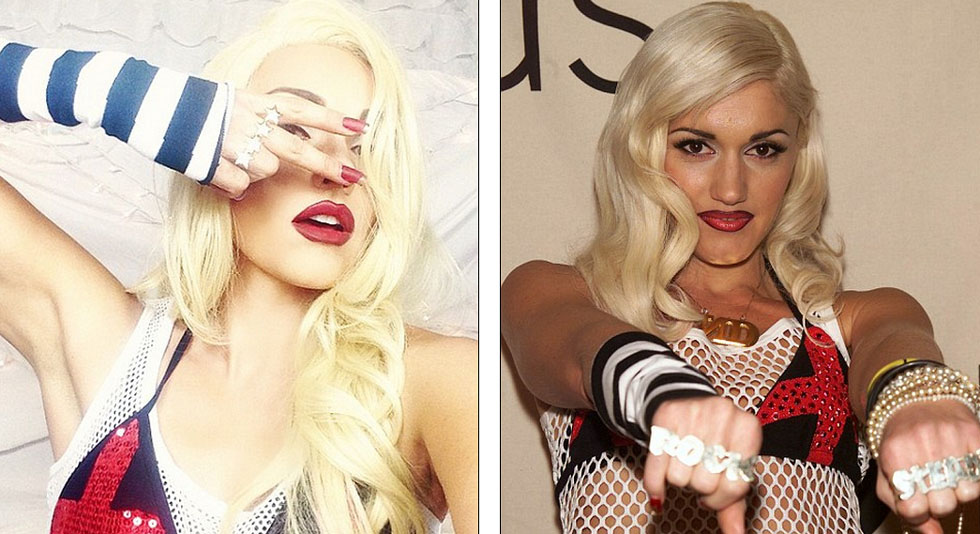 约翰逊(左)模仿格温·史蒂芬妮(右)。(网页截图)