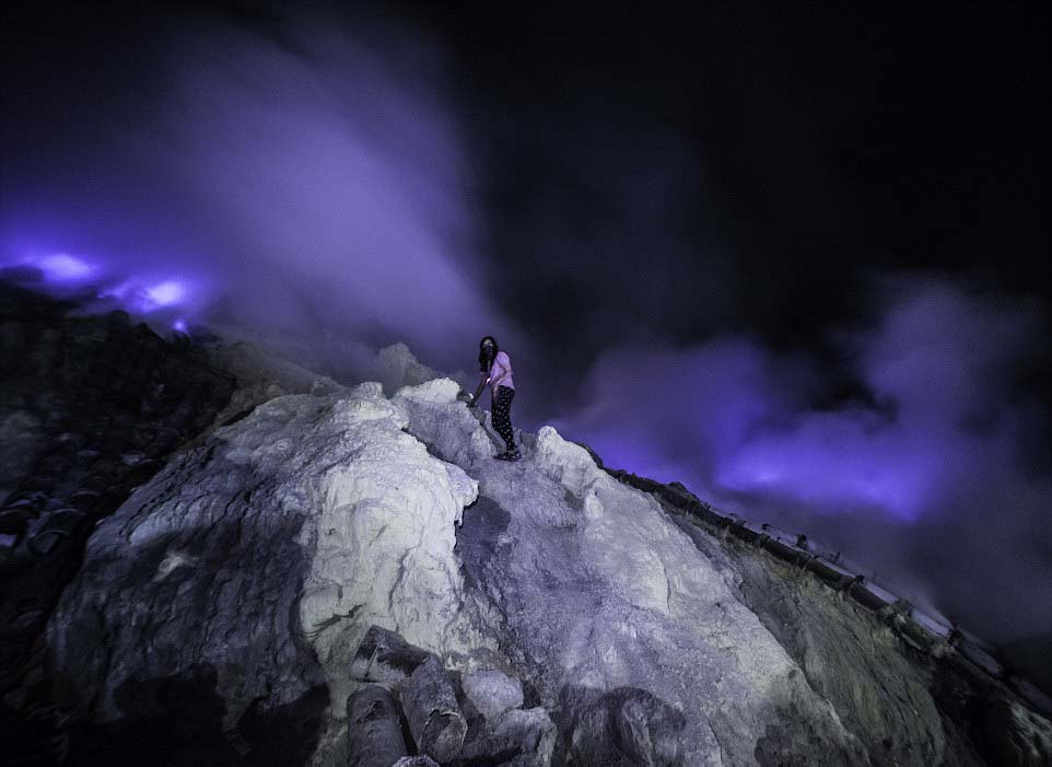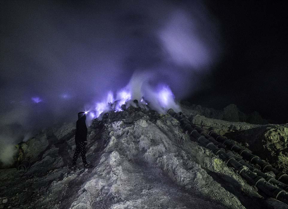 据报道,伊真火山附近居住着不少矿工,他们以拾火山喷发出的硫磺为生。硫磺会产生有毒的气体,对他们的身体十分不利。(沈姝华)