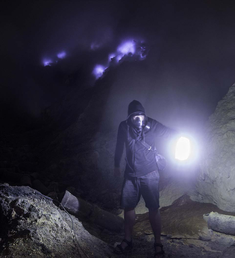 伊真火山附近居住着不少矿工,他们以拾火山喷发出的硫磺为生。硫磺产生的有毒气体有他们的身体十分不利。