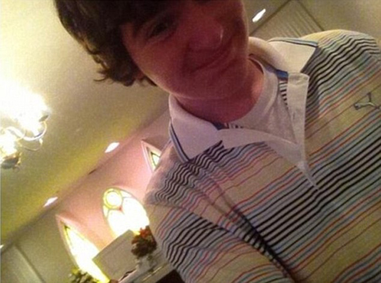 这位脸上带着笑容的青年正在自拍,尽管他的后面就是外祖母的棺材。