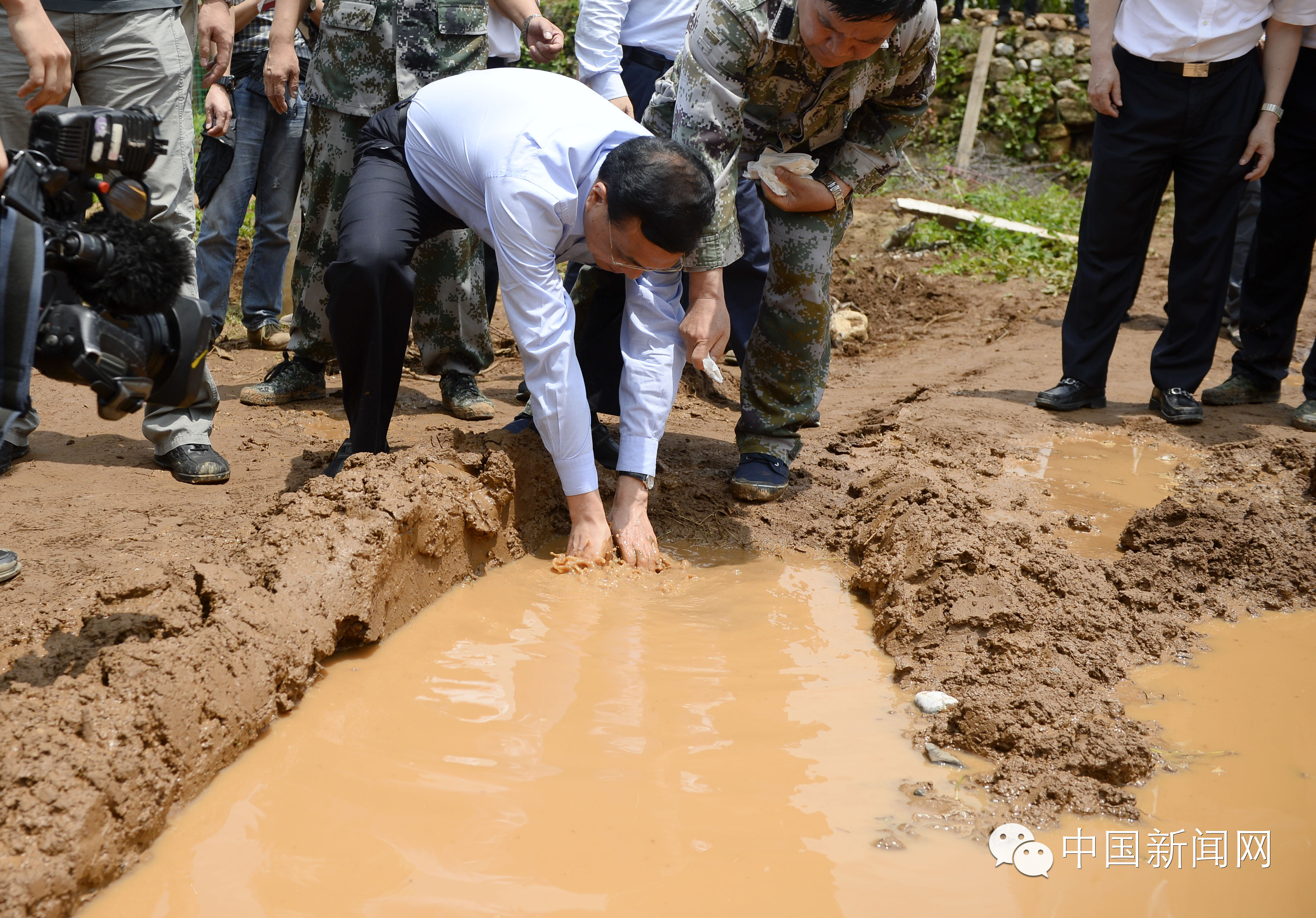 8月4日,云南鲁甸地震发生后,李克强总理连夜赶往震区。因道路中断,李克强下车徒步5公里,前往受灾最严重的龙头山镇龙泉村。在湿滑山路上,总理不慎滑倒,他弯腰用泥水洗了洗手后继续疾行。