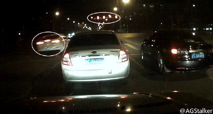 图说:网友行车记录仪拍摄到的嫌疑车辆闯红灯图像。来源:微博网友图