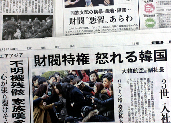 报道称,各家外媒中,日本媒体对“坚果返航”的报道显得尤为积极,日媒在过去的一个月期间,将大韩航空“坚果返航”事件作为主要新闻做了详细的报道,并开设了专题。一位在东京某医院工作的韩国人称:“我的日本患者中没人不知道事件当事人赵显娥,这让我觉得很没面子”。